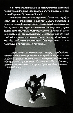 Валерий Шевченко: Это первый конкурс мимов в России. Три тура. На каждом туре актеры-мимы показывают свою новую программу. Принцип отбора? Если честно, по сусекам наскребли. Жанр этот умирает на корню. Если в Москве, в ГИТИСЕ, сократили часы по пантомиме! Основная задача фестиваля - собрать все свои силы, стать клином и начать пробивать. Пантомиму как-то надо возвращать. Марина Тимашева: Валера, чем вы объясняете то загнанное положение, в котором оказалось искусство пантомимы? Сколько угодно можно говорить о том, что театр интернационален. Ничего подобного. Театр очень сильно зависит от слова. Вот есть тот вид театрального искусства, который, действительно, не зависит от слова, который понятен. При разнице, конечно, жеста, пластики в разных культурах, тем не менее, понятен. И выгоден, потому что нашим театрам и артистам нравится ездить по разным зарубежным фестивалям. А я уверена, что в мире фестивалей мимов достаточное количество. И это как раз шанс понравиться зрителю, который не пойдет никогда в жизни смотреть драматический спектакль с титрами и субтитрами. В чем же дело? Валерий Шевченко: Дело в том, что у нас нет такой профессии. Нет официального статуса театра пантомимы. Вот и все. Приехал Марсо. Все увидели, все обалдели, все стали заниматься, кто как мог, и показывать элементы школы Декру. Но на этом все прекратилось. Выпускается актер. А куда он пойдет? Вот они идет, куда возможно. Кто на эстраду, кто заниматься клоунадой и пантомимой, кто делает свои театры, антрепризы. Но в основном для меня пантомима - это искусство одиночек. Как поэзия. Для меня пантомима это, прежде всего, поэзия без слов. Поэтому поэт один. Марина Тимашева: Тут в разговор вступает член жюри "Белой Маски", профессор СПГАТи, лауреат "Золотой медали Марселя Марсо" Елена Маркова. Елена Маркова: Поэзия требует личности и одинокости. Но вся-то проблема в том и заключается, что нужно воспитание актера через пантомиму. Я не вижу большой проблемы в том, что нет театра пантомимы. В процессе воспитания закладывается свобода языка, а дальше будешь ли ты прозаиком, будешь ли ты поэтом, это уже твое дело. Это очень долгожданный фестиваль. Их уже у нас более 50-ти. Казалось бы, появление нового не должно было вызвать интереса. Но на этот фестиваль возлагается огромное количество надежд. Дело в том, что до перестройки у нас было очень сильное любительское движение пантомимы. И когда Слава Полунин в 82 году бросил клич по стране, съехалось более 200 коллективов. Сейчас удалось собрать около 10-ти. Все, кто смог хоть как-то выжить, вынуждены были уехать за рубеж. Это, прежде всего, Полунин, Адасинский. Здесь экономические проблемы. Есть еще проблема взращивания новых артистов. Раньше ряды пополнялись за счет любительского движения. Но с тех пор, как самодеятельность перестала у нас существовать... Но это уже не экономические, а социологические причины. Коллективов этих нет. А дело в том, что и в государственных учебных высших заведениях очень скверная традиция. Пантомиму очень редко где преподают. Марина Тимашева: Лена, я перебью вас на этом слове. Что за традиция? О чем вы говорите? Елена Маркова: Я имею в виду, что современная пантомима к нам пришла с Запада. И взросла она на необычайном интересе к таланту Марселя Марсо, Жан-Луи Барро. А между тем, в начале века, когда плеяда блистательных режиссер