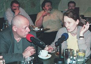 Елена Фанайлова: Мы хотим обратиться к публике. В клубе "Проект ОГИ" сегодня собрались художники, литераторы, журналисты, музыканты и прочие завсегдатаи этого чудесного, но очень прокуренного заведения. Дмитрий Борисов - главный менеджер "Проекта ОГИ", который участвовал в организации выставки галереи "Улица ОГИ" на ярмарке "Арт-Москва". Митя, доволен ли ты коммерческим эффектом, произведенным галереей "Улица ОГИ", доволен ли ты вообще? Дмитрий Борисов: Я доволен работами, которые были выставлены на нашем стенде. Особенно работы Саши Бродского и Николы Овчинникова. Коммерческим эффектом нельзя быть довольным или недовольным, потому что его вообще не было. Как нет уже много лет коммерческого эффекта от современного искусства. Вообще, ярмарка, по-моему, производит очень печальное зрелище. На мой взгляд, гораздо хуже, чем в прошлом году. Хотя в прошлом году были очень неприятные проекты, провокативные, которые мне не нравятся и не близки. Но в этом году было откровенно скучно. Елена Фанайлова: Спасибо, Митя. Я прошу тебя передать микрофон художнику и литератору Семену Файбисовичу. Семен Файбисович: Я могу, продолжая то, что говорил Митя, сравнить предыдущую выставку и эту. Вот та была вся такая провокационная, хулиганистая, там, на картинках - трупы кругом. То ест - она такая вызывающе некоммерческая как бы была, и там чего-то при этом продавалось. А эта, наоборот, вызывающе коммерческая, вся такая красивая. Много чего красивого там, но при этом ничего не продается. Мне тут недавно сказали, что сейчас опять живопись разрешили, она - в моде. Я имею в виду всеобщее увлечение российских кураторов и художников инсталляциями. И действительно, на выставке она появилась. На меня это произвело хорошее впечатление, потому что - все знают - у нас здесь не бытие определяет сознание, а наоборот. Может быть, если начнут устраивать такие коммерческие выставки, то в результате какой-то рынок образуется. Потому что пока это все игры, это все иллюзии. И все вызовы и эпатажи при отсутствии рыночных инфраструктур и институций довольно своеобразно выглядят. И все игры в коммерцию при отсутствии реального рынка тоже довольно забавны. Но возможно, что сами эти игры - они породят некоторую реальную ситуацию. Вот на это - надежда. Елена Фанайлова: Спасибо, Семен. Реплика Мити Борисова. Он вцепился в микрофон, и мы не можем не дать ему высказаться. Дмитрий Борисов: Рынок будет только тогда, когда адвокаты, гинекологи, стоматологи станут покупать современное искусство, а пока этого не начнется, ни о каком рынке говорить нельзя. Елена Фанайлова: Спасибо, Дмитрий. Возвращаемся за стол экспертов. Иосиф Бакштейн: Несколько слов о том, что такое на самом деле "Арт-Москва". А то наши слушатели не понимают, чем мы им голову морочим. Во-первых, есть ярмарка, то есть коммерческие галереи, которые занимаются продажей искусства. В этом году в ней участвовали 29 галерей (рекорд, пока), из которых было 8 иностранных галерей, включая немецкие, австрийские и шведские. Во-вторых, наряду с ярмаркой существует так называемая некоммерческая часть программы Арт-Москва, куда входит порядка 15-ти очень разнообразных и довольно интересных проектов. И обычно это такая схема: разные страны представляют свое национальное искусство. В этом году это была очень интересная выставка финского искусства, была выс